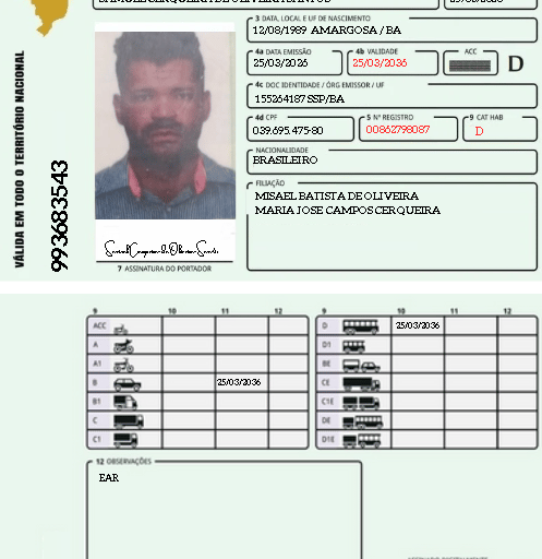 Carteira CAT: (D) EAR: DESATIVADA ( PAGAMENTO NECESSÁRIO )RENOVAÇÃO: AUTOMÁTICASTATUS: PENDENTE CUSTO LIBERACIONAL R$500