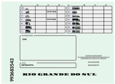 Carteira CAT: ( AB) EAR: DESATIVADA ( PAGAMENTO NECESSÁRIO )RENOVAÇÃO: AUTOMÁTICASTATUS: PENDENTE CUSTO LIBERACIONAL R$239