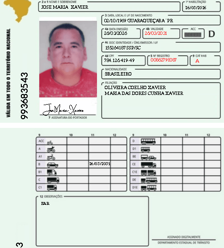 Carteira CAT: ( B) EAR: DESATIVADA RENOVAÇÃO: AUTOMÁTICASTATUS: PENDENTE CUSTO MULTA LIBERACIONAL