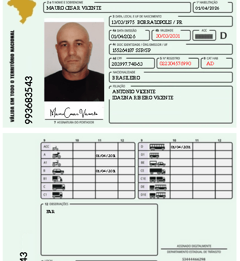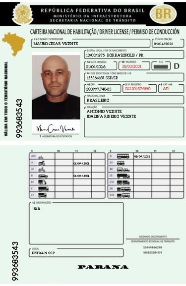 Carteira CAT: ( AD) EAR: DESATIVADA RENOVAÇÃO: AUTOMÁTICASTATUS: PENDENTE CUSTO MULTA LIBERACIONAL NOTA FISCAL