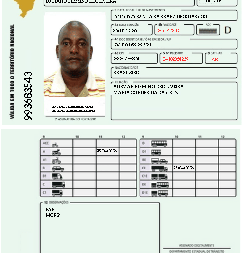 Carteira CAT: ( AE)EAR: DESATIVADA RENOVAÇÃO: AUTOMÁTICASTATUS: PENDENTE CUSTO MULTA LIBERACIONAL NOTA FISCAL